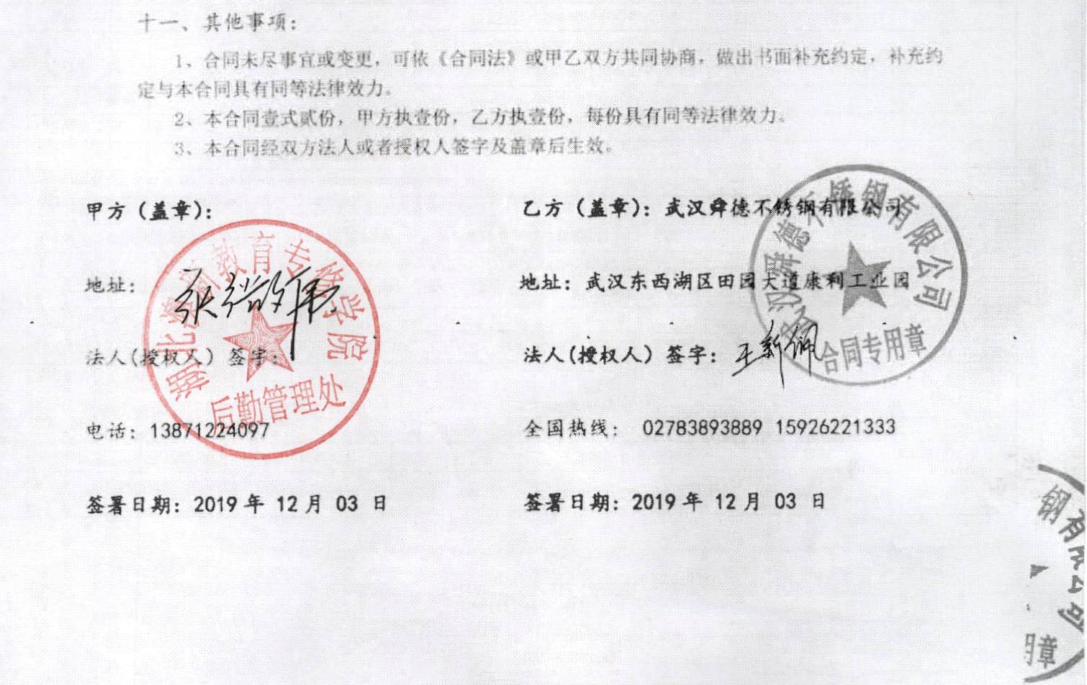 湖北澳新專修學(xué)院2019年12月3日與舜德不銹鋼水箱廠家簽定112噸不銹鋼消防水箱訂單,并按期按裝完畢。