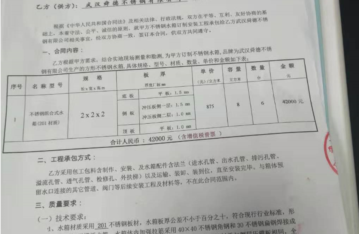 武漢舜德不銹鋼水箱成立于2014年4月26日,屬自然人合伙企業(yè),企業(yè)原始出資額100萬元;截至2019年12月31日,企業(yè)總資產(chǎn)300多萬元,屬小微企業(yè)。我廠將遵循全新的經(jīng)營理念,致力于不銹鋼水箱制品的全面普及,以更好、更豐富的產(chǎn)品為您打造專屬的生活品位。舜德水箱,優(yōu)質(zhì)有保障。