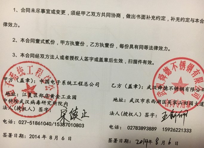 武漢舜德不銹鋼有限公司與2014年8月25日安裝完成中國電子系統(tǒng)技術(shù)有限公司420噸不銹鋼水箱
