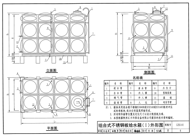 12S101組合式不銹鋼水箱圖集(外形圖)