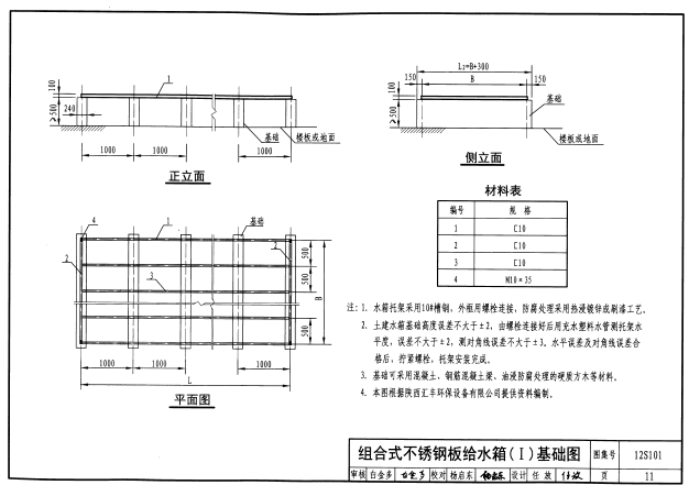 12S101組合式不銹鋼水箱圖集(基礎(chǔ)圖)