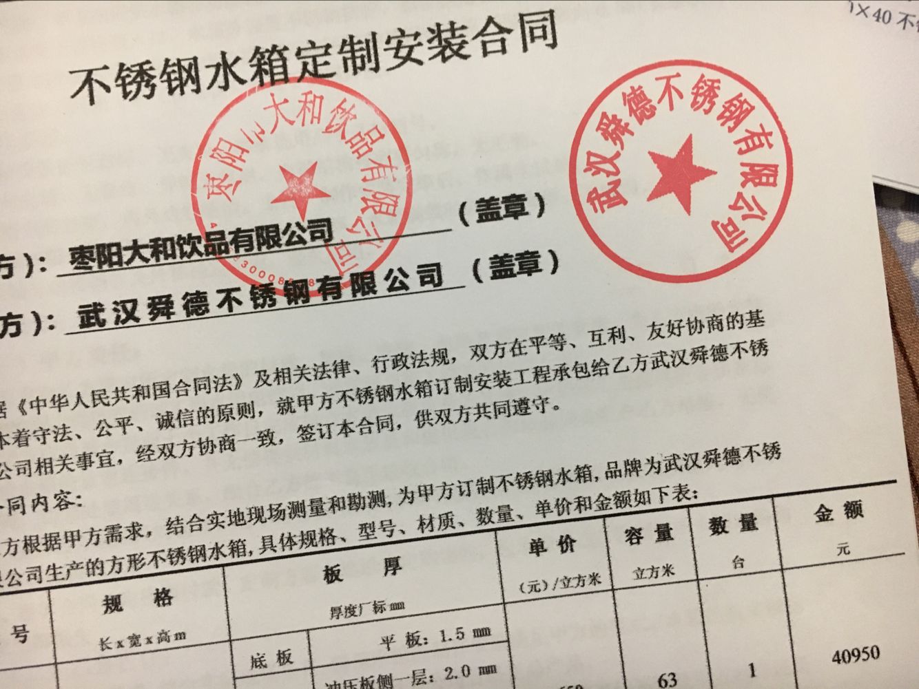 武漢舜德不銹鋼有限公司與2015年5月15日安裝完成棗陽市大和純凈水廠二臺63噸不銹鋼水箱,棗陽市大和飲品有限公司成立于2014年5月,位于環(huán)境優(yōu)美交通便利的南城工業(yè)園區(qū)。全新的廠房,總投資約5000余萬元。占地面積2400平方米,系集檢測 化驗 生產(chǎn) 銷售為一體的現(xiàn)代化型企業(yè),主要產(chǎn)品:有法帝王泉純凈水等。